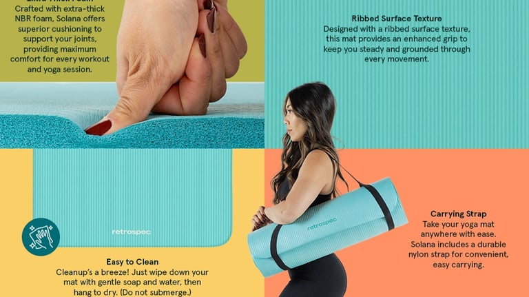 Extra-thick (1-inch) cushioning to protect your knees and joints during pilates or yoga. Non-slip texture with a carry-on strap included.