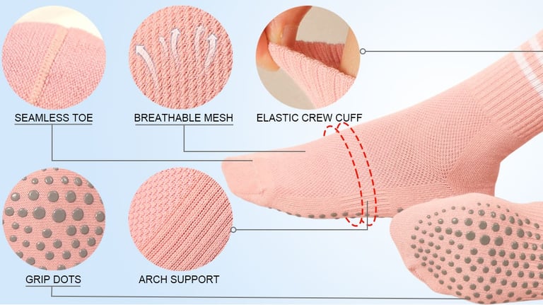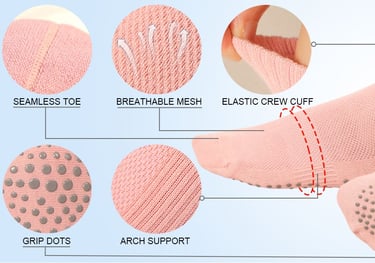 Fashion meets function. Non-slip silicone soles ensure stability on the mat or reformer, wrapped in a sleek ballet-inspired design.